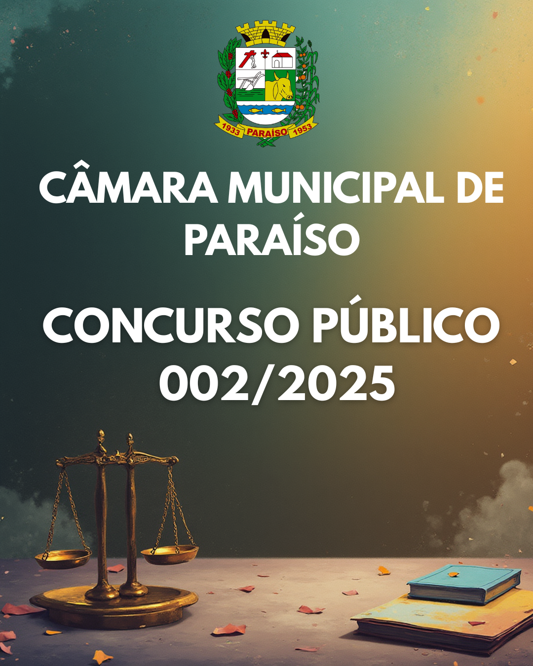 O Presidente da Câmara Municipal de Paraíso, Estado de São Paulo, no uso de suas atribuições legais e em consonância com o Artigo 37, inciso II, da Constituição Federal e demais Legislações pertinentes, torna público aos interessados que estarão abertas as inscrições para o Concurso Público n° 002/2025, destinado ao provimento de 01 (uma) vaga para o cargo efetivo de "Contador do Legislativo" e 01 (uma) vaga para o cargo efetivo de "Procurador do Legislativo". O presente concurso reger-se-á pelas normas estabelecidas neste edital. Estabelece ainda as instruções especiais que regularão todo o Concurso Público ora instaurado, a saber:
